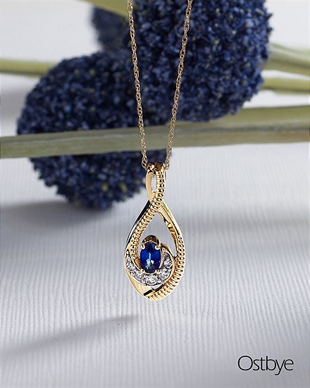 3/8 Tgw. Diamond & Sapphire Pendant In 14K Gold With 18" Chain