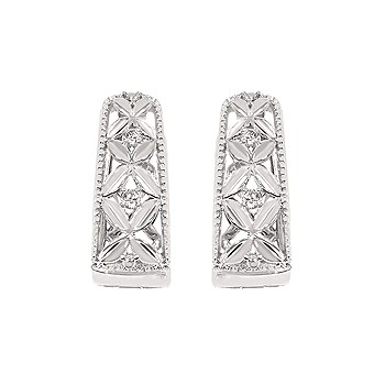 0.04 Ctw. Diamond Hoop Earrings In Sterling Silver
